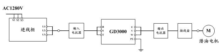 变频器配置输入电抗器和输出电抗器;输入端通过进线柜接入电源,输出端通过接线盒接入潜油电机。