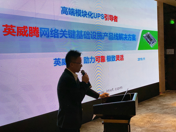 首先,英威腾电源华东大区总监董兰亭先生做了答谢致辞,并向大家简要介绍了英威腾电源公司华东大区近年来所取得的显著成绩,同时,也对合作伙伴长期以来的支持与信任表示由衷的感谢,据赛迪顾问不间断电源市场研究报告显示,英威腾模块化UPS电源产品在中国市场本土品牌中遥遥领先,希望能与更多的客户展开共赢的合作。