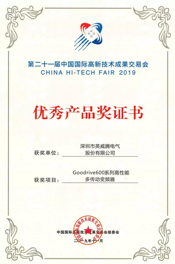同时,英威腾本次参展的代表产品“Goodrive600系列高性能多传动变频器”获得由高交会组委会颁发的“优秀产品奖”,是对英威腾创新水平和研发实力的再次肯定。