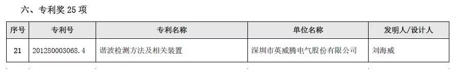 近日,深圳市科技奖励委员会发布了关于公示2019年度深圳市科学技术奖拟奖名单的通知,英威腾申报专利“谐波检测方法及相关装置”荣获深圳市专利奖。英威腾在2015年、2016年、2017年相继获得深圳市专利奖、广东省专利奖、国家专利奖,今年又一项专利获得深圳市专利奖,这是对英威腾研发创新能力和专利综合实力的再次肯定。