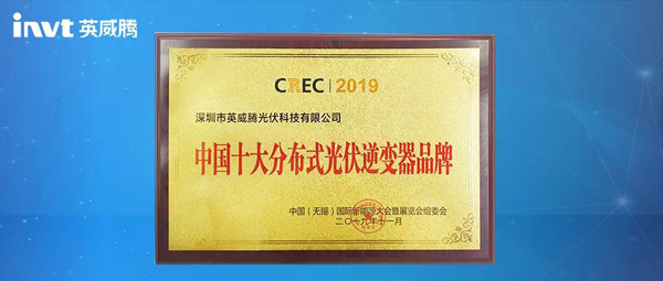 英威腾光伏荣获“中国十大分布式光伏逆变器品牌奖”
